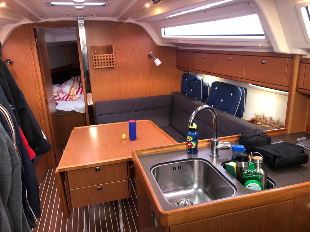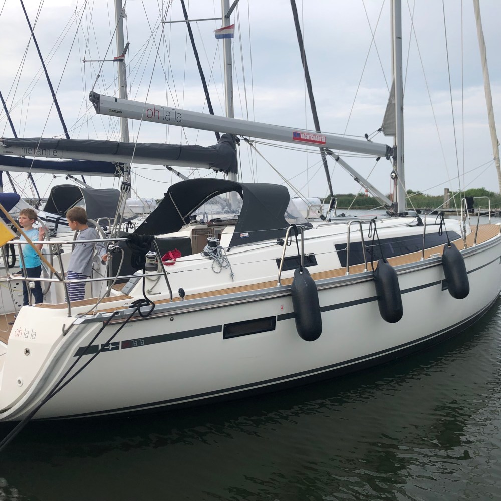 In Lelystad lag die oh la la, eine Bavaria 37 Cruizer, die für 3 Seemänner und zwei Leichtmatrosen ausreichend Platz bietet.