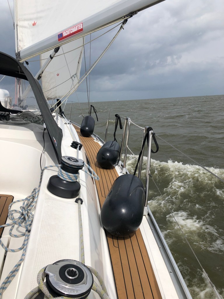 Der kommende Tag brachte dann bei hoher See den Törn nach Den Oever; auf Grund des starken Windes setzen wir nur die Fock und die allein beschleunigte uns auf 8-10 Knoten