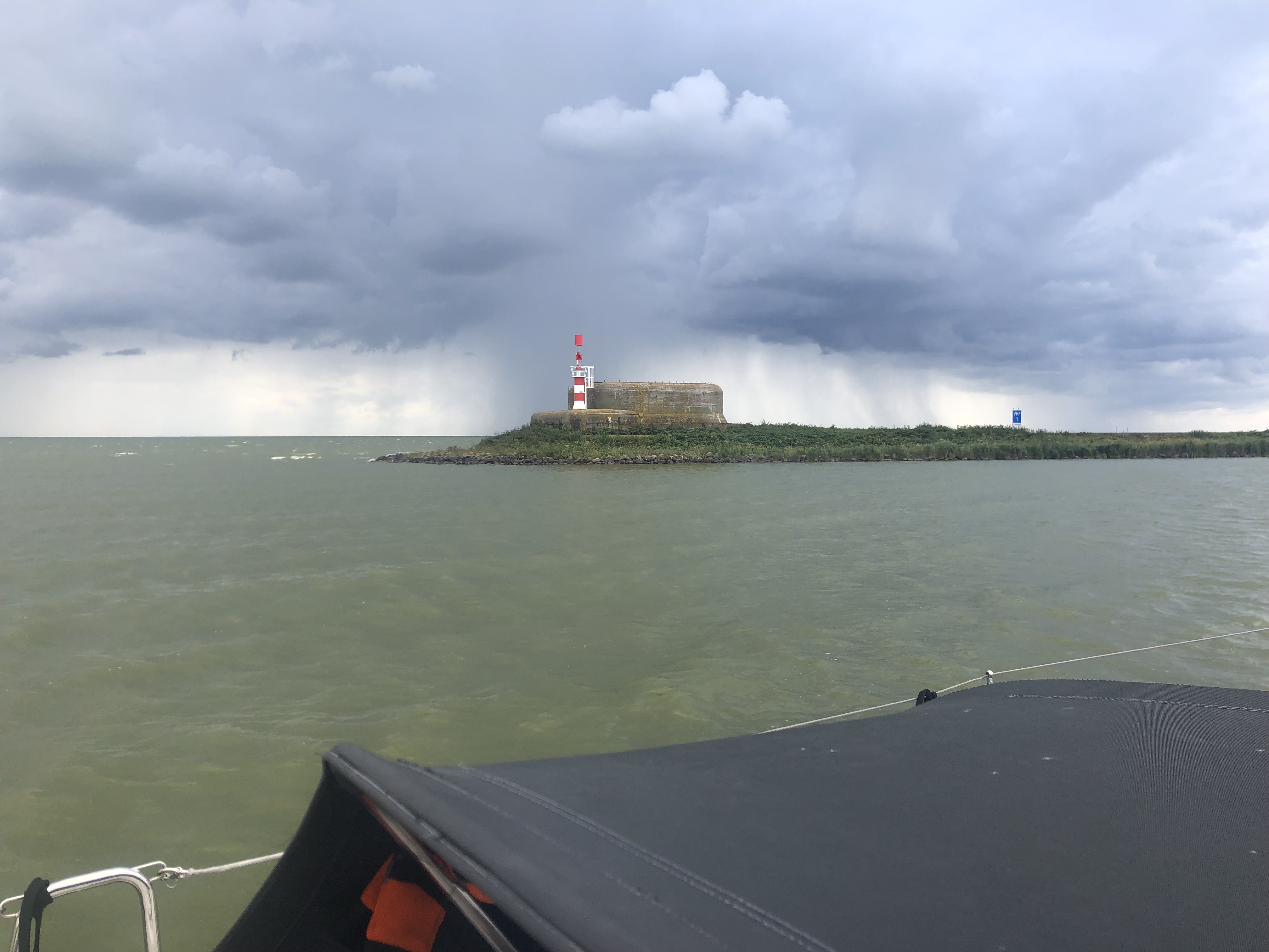Eine echte Herausforderung war der Törn nach Texel. Nach der Schleuse im Abschlussdeich zwang eine heranziehende Gewitterfront zur kurzzeitigen Pause. Überfahrt nach Texel oder ein sicherer Hafen im IJsselmeer? Die Überfahrt sollte angegangen werden;