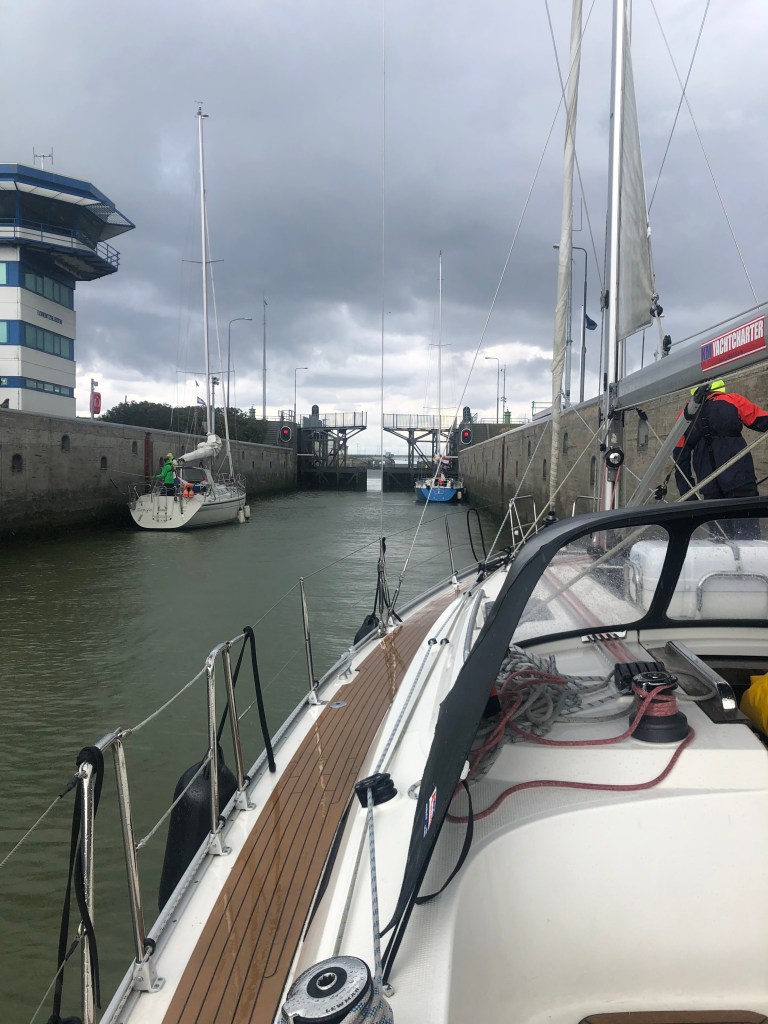Dann endlich Segeln. Der erste Törn führte von Lelystad über Stavoren durch eine Schleuse in den Johan Frisokanaal bis in den „Jachthaven de Pyramide“