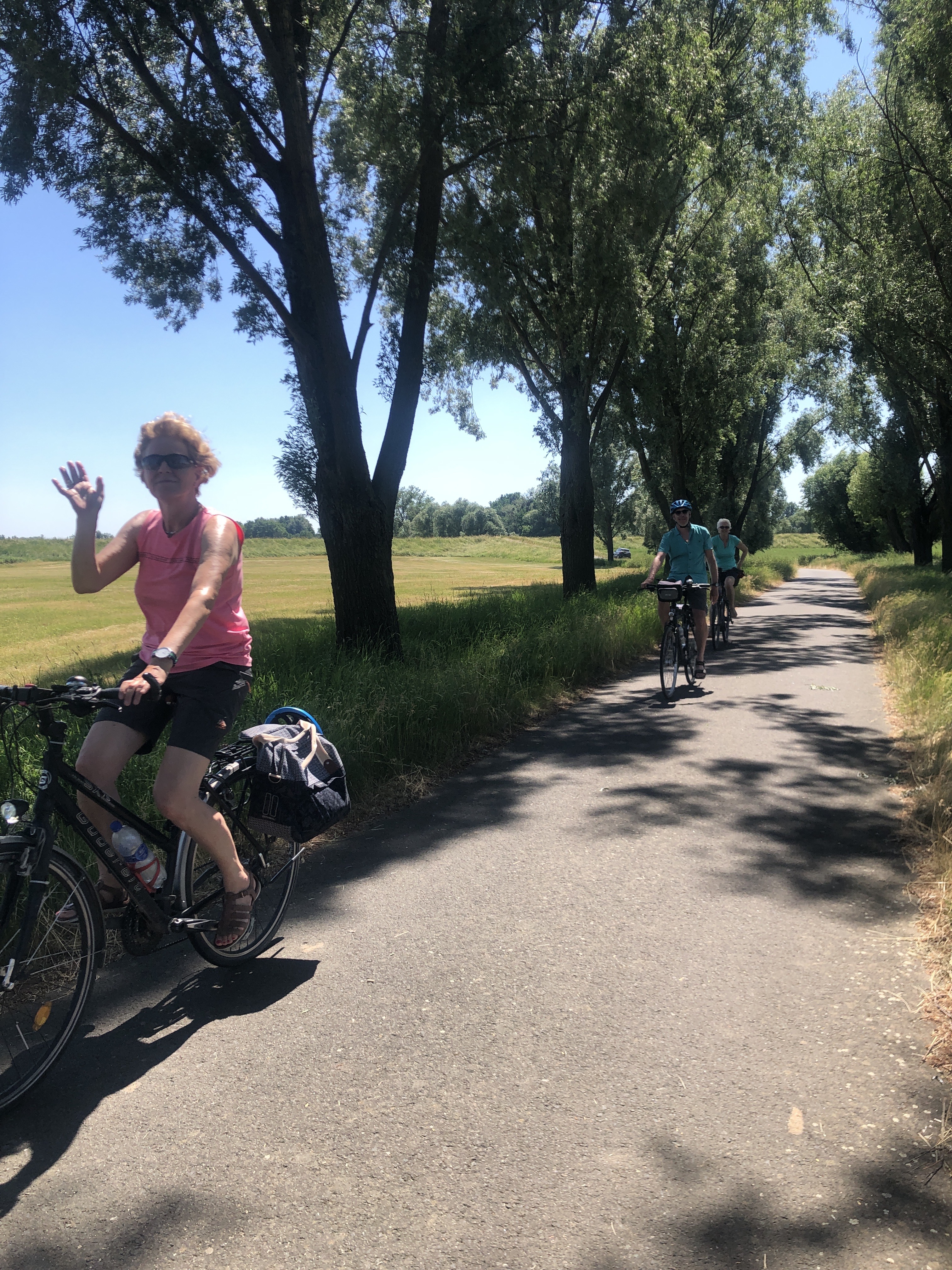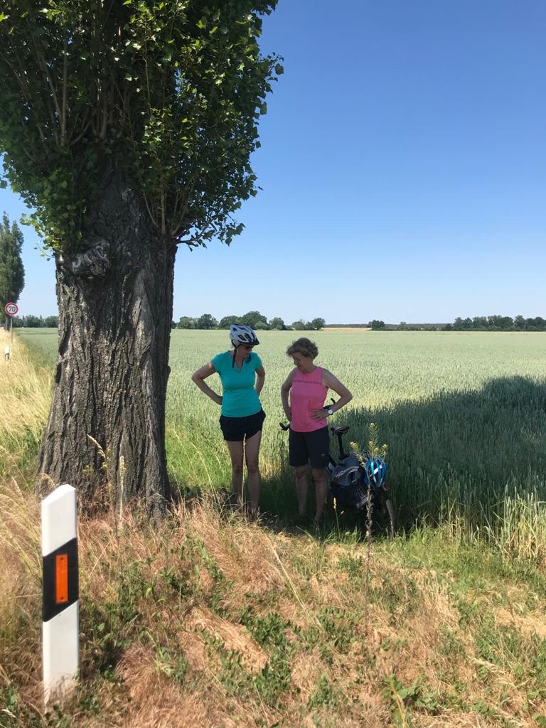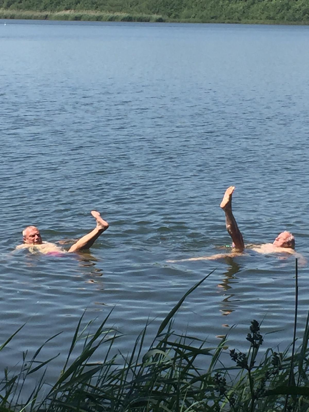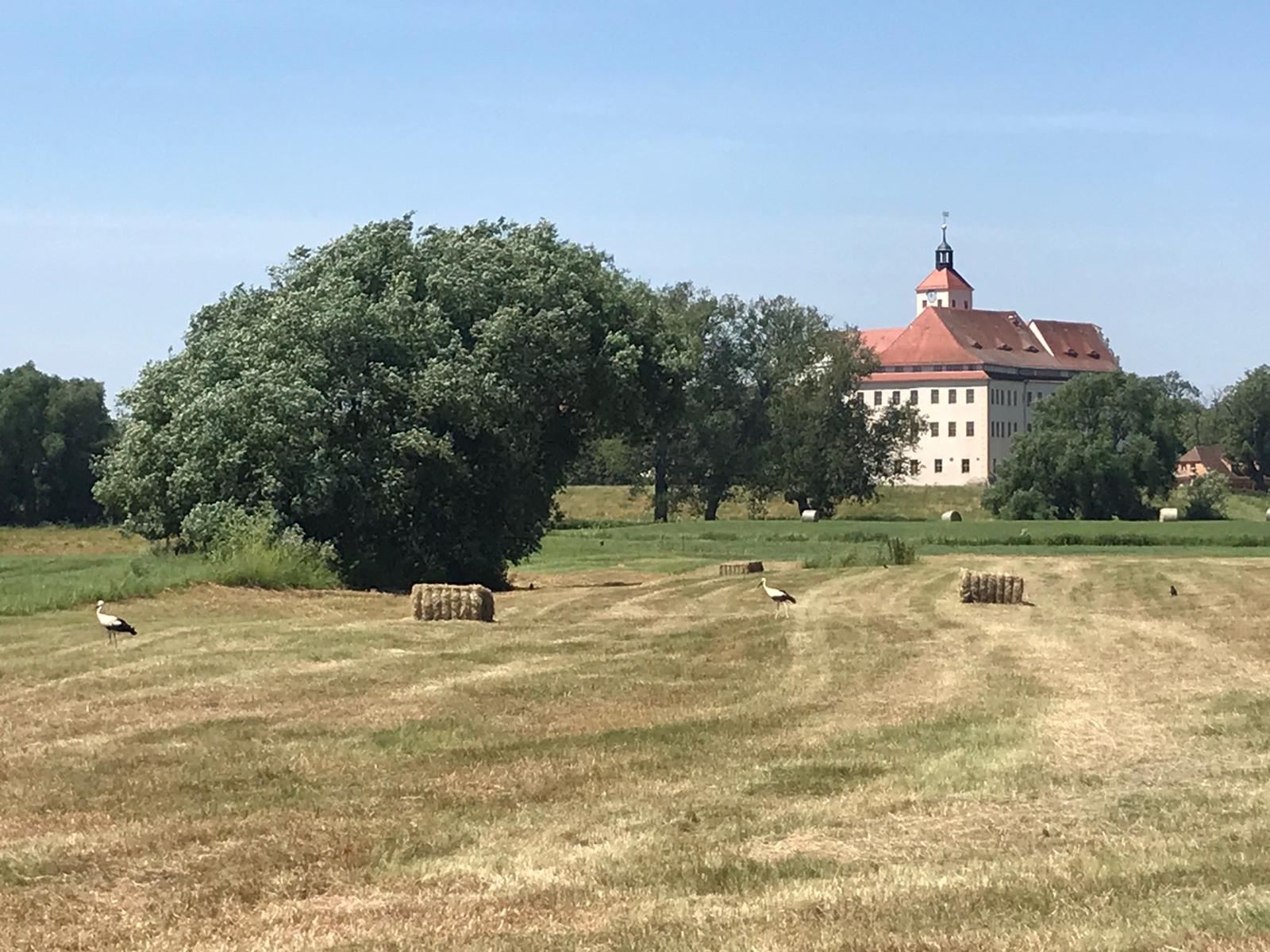 In den Elbauen gab es auf der Fahrt zwei Highlights: Mittagspause mit einem erfrischenden Bad im See bei Mühlberg und eine Flugschau mit Rotmilanen und Bussarden.