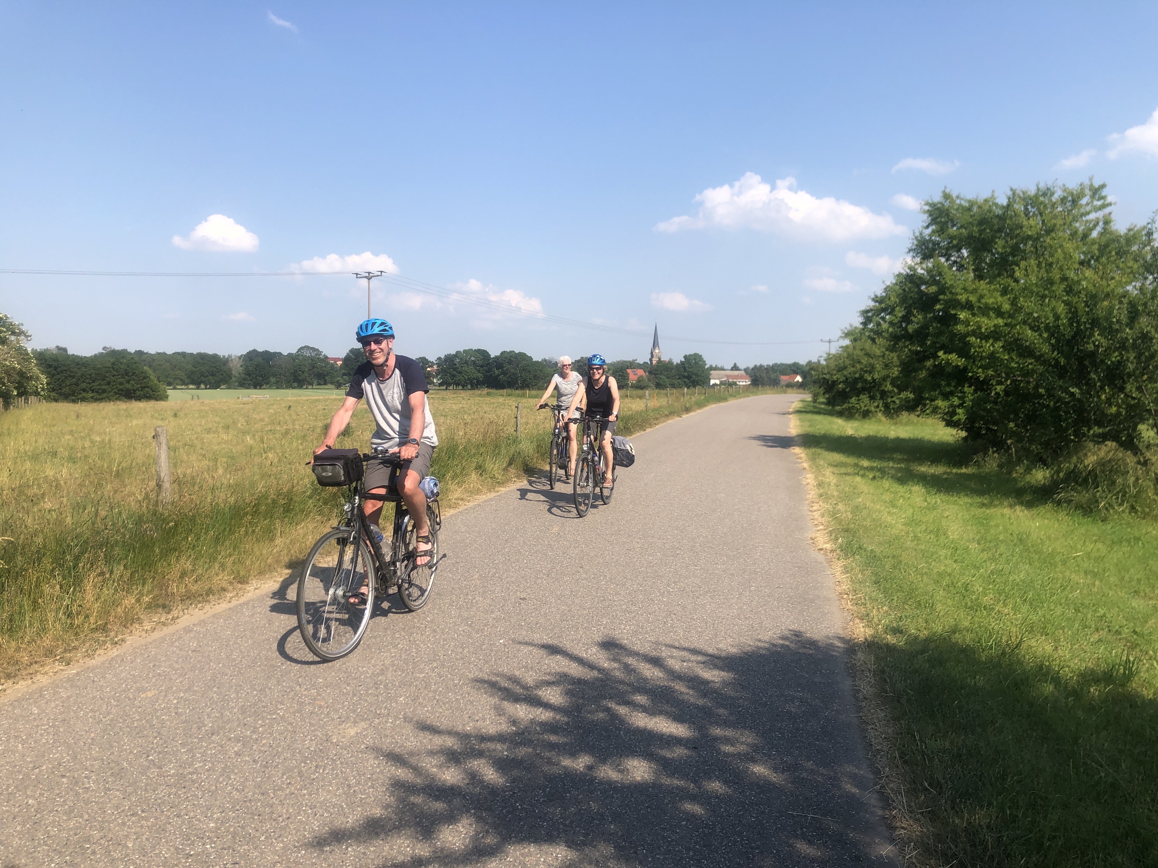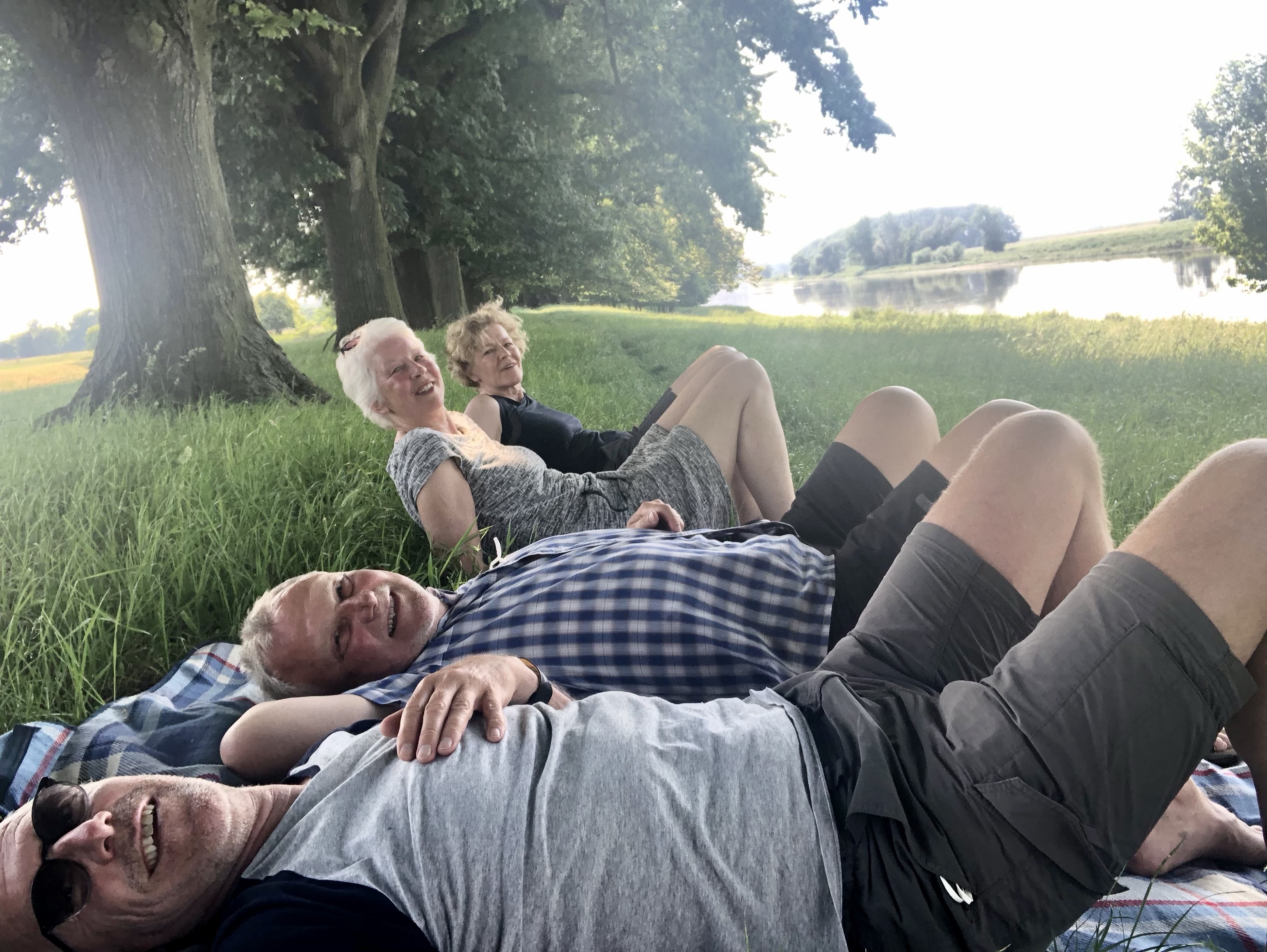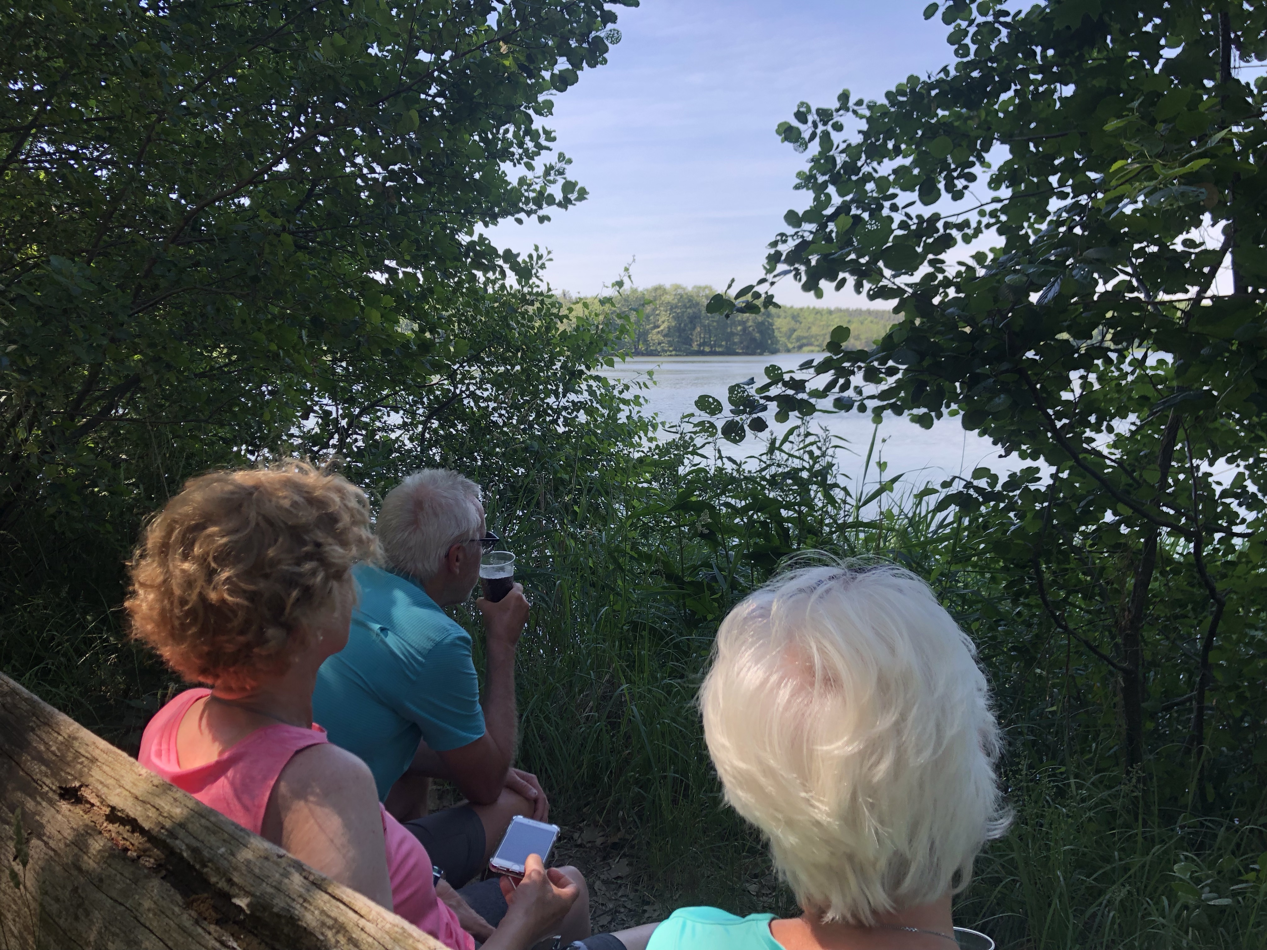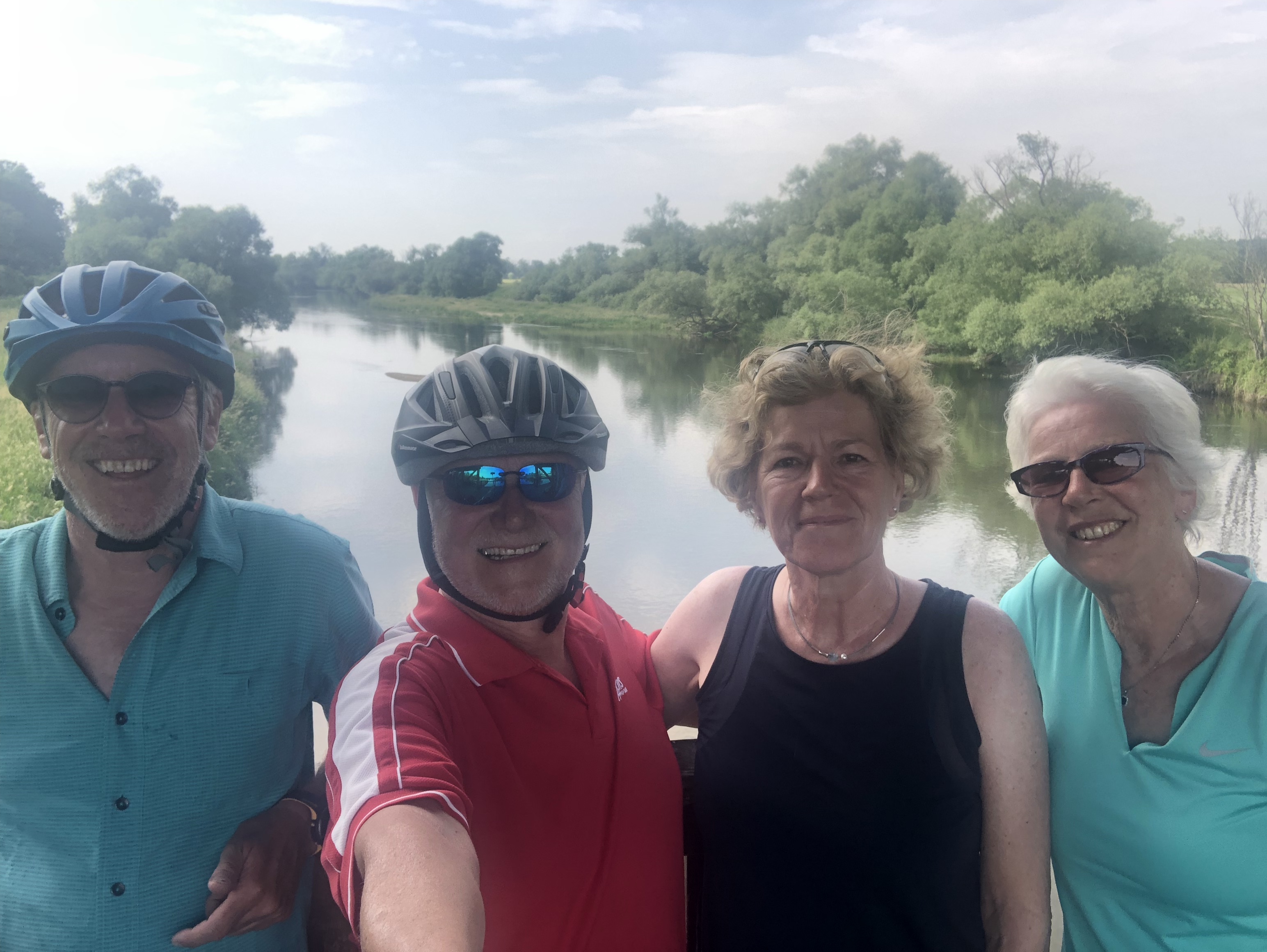 In den Elbauen gab es auf der Fahrt zwei Highlights: Mittagspause mit einem erfrischenden Bad im See bei Mühlberg und eine Flugschau mit Rotmilanen und Bussarden.
