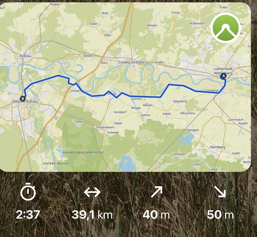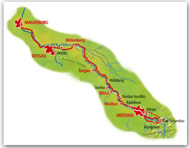 auf dem Elbedamm durch schöne Landschaften, vorbei am Weltkulturerbe Wörlitzer Gärten bis zur „Bauhausstadt“ Dessau.