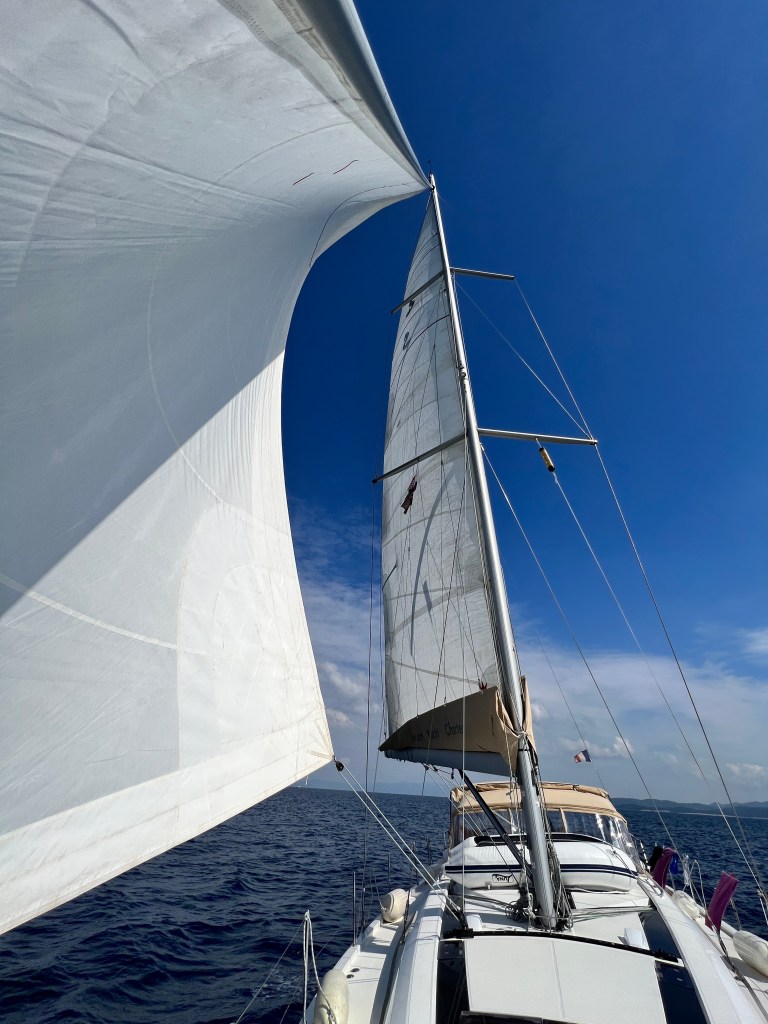 endlich Wind, 9 Knoten, auf Halbwindkurs in die Bucht von Pasadur auf der Insel Lastovo