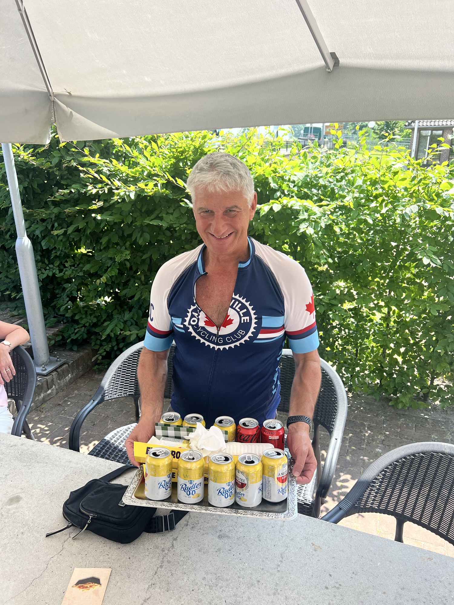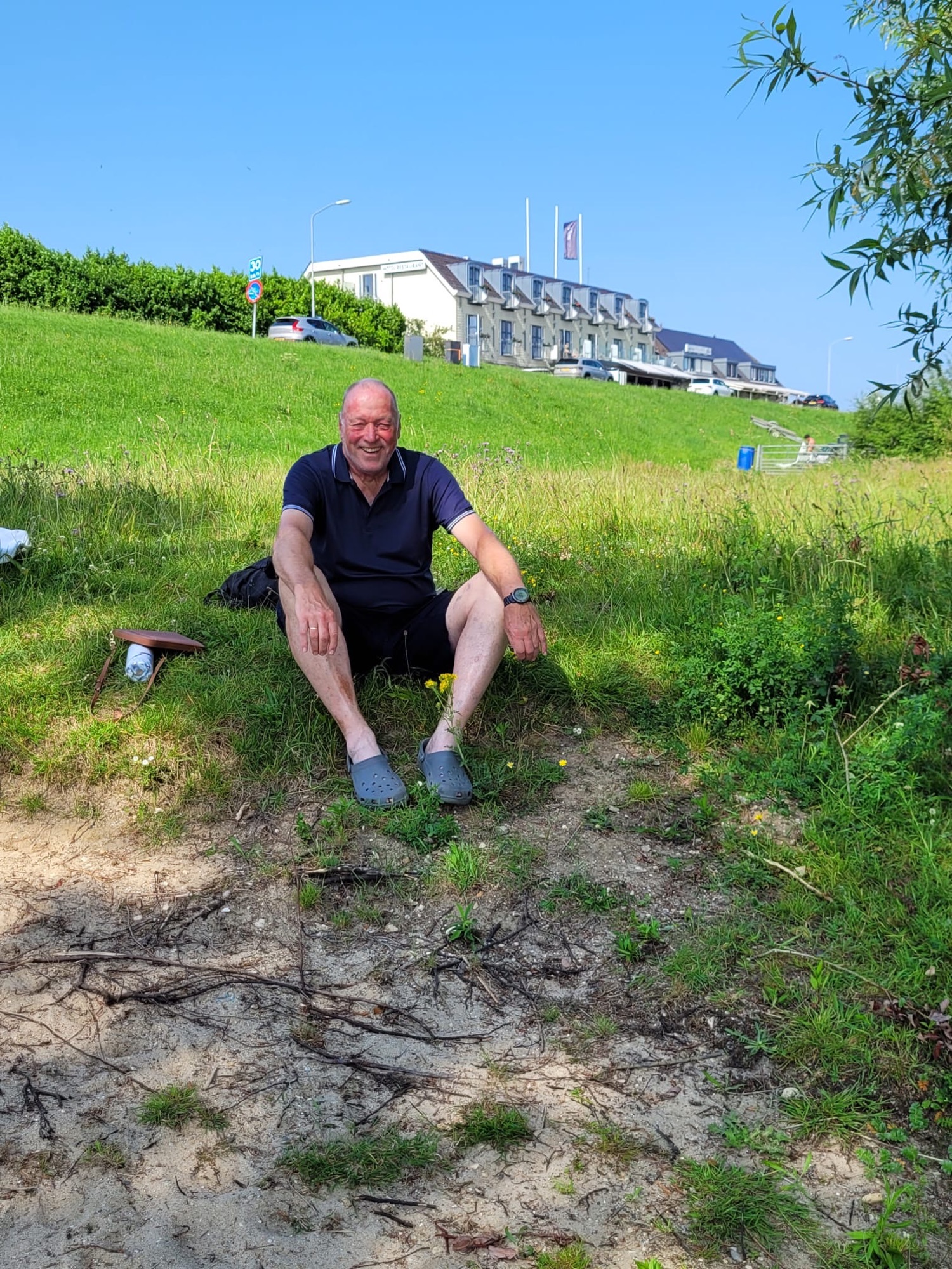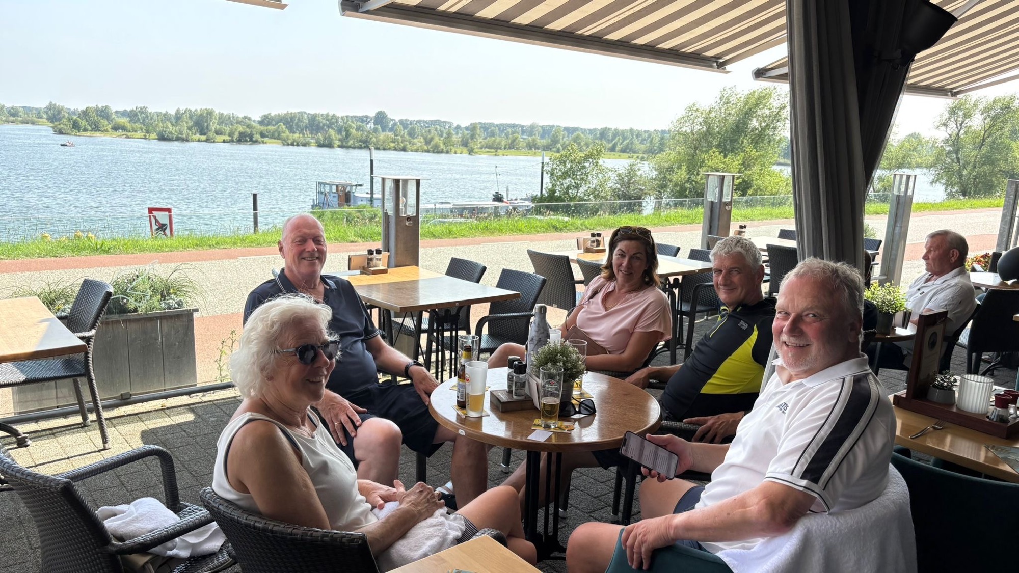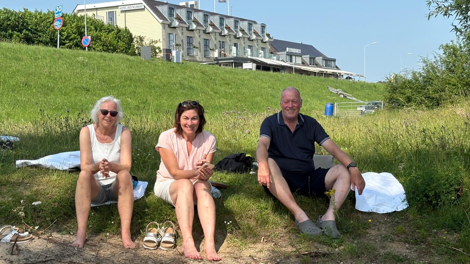 Ein „Ankommenbierchen“ vor dem Schwimmen in einem Maasarm