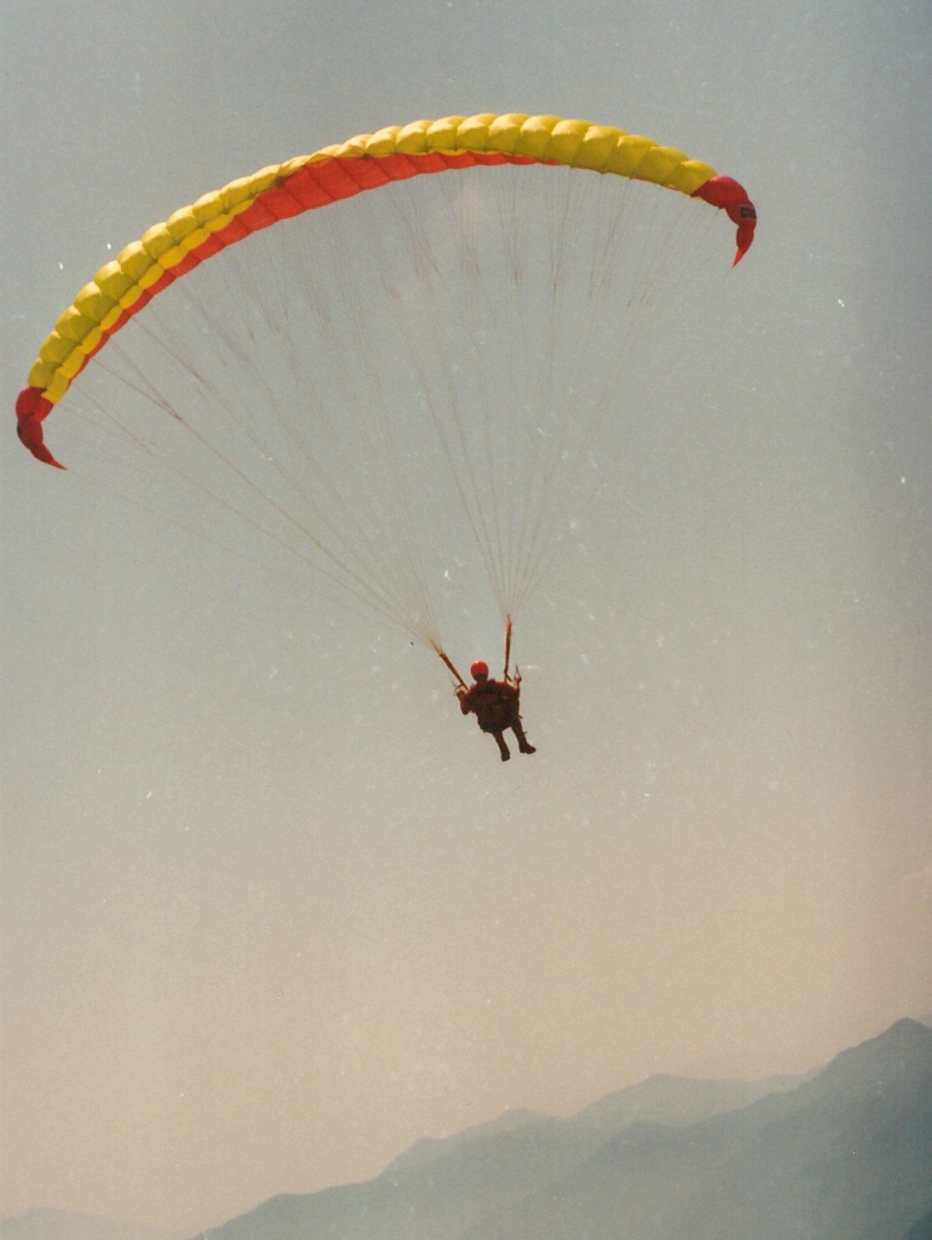 Die Idee des Paraglidings entstand beim Volleyballspielen. Ich machte mich schlau und fand die Flugschule mit dem damals sehr bekannten Pionier der Sportart Elmar Müller. 1990 begann alles im Sauerland. Das erste Mal mit Ecki, Peter, Volker, Pjotr, Paul, …..